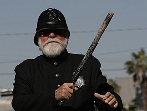 À chaque enjambée, le taureau gagne du terrain sur l’officier qui n’a aucune chance de se rendre à la clôture avant que le taureau ne lui enfourche le postérieur. Le fermier laisse tomber ses outils, court vers la clôture et crie à l’officier: «Ta badge, montre-lui ta badge!»